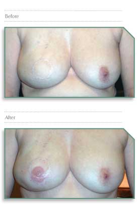 Diahann is able to create a colour match of the patient's original or remaining areola after breast reconstruction. The effect created is 3 dimensional and very realistic. This natural appearance helps re establish the patient's confidence, self esteem and subsequently their well being.
